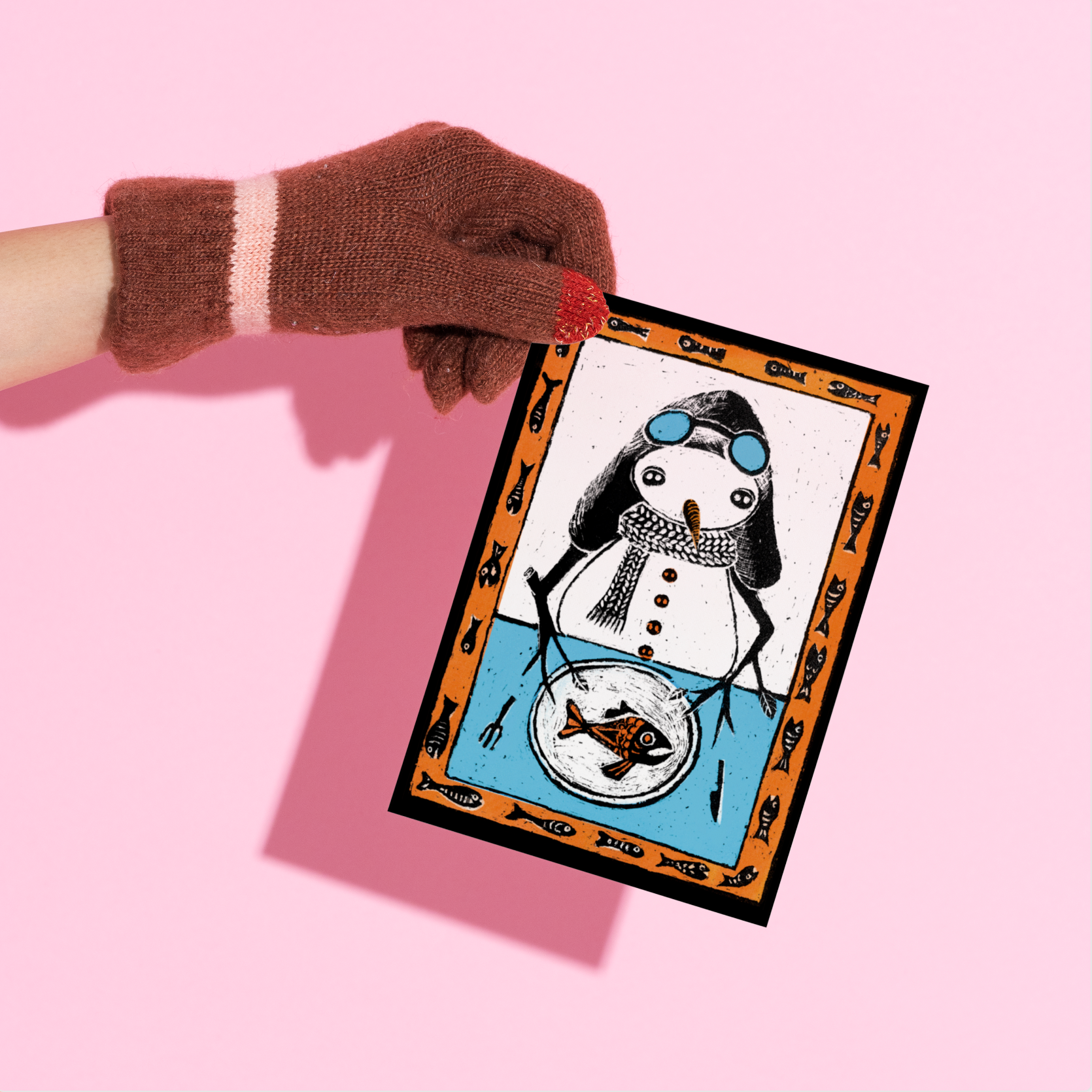 Greeting cards featuring an acrylic illustration on glass (10.5 × 14.8 cm).